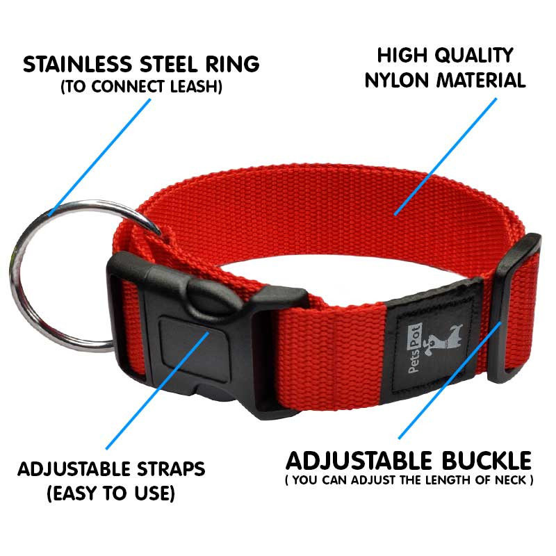 Pet’s pot classic collar made with nylon material, right choice as it is durable and fully adjustable. It has high weathering properties and offer better sunlight resistance.Â